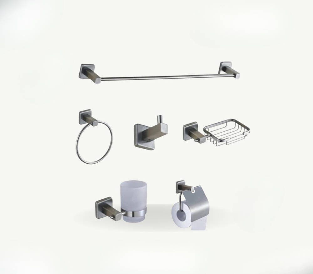 مجموعة إكسسوارات حمام 6 قطع ستامينا - كروم (موديل AC-3700)
