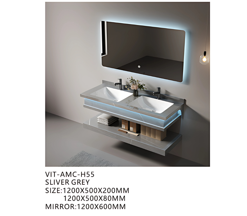 🛁 مغسلة مزدوجة SLIVER GREY – VIT-AMC-I55