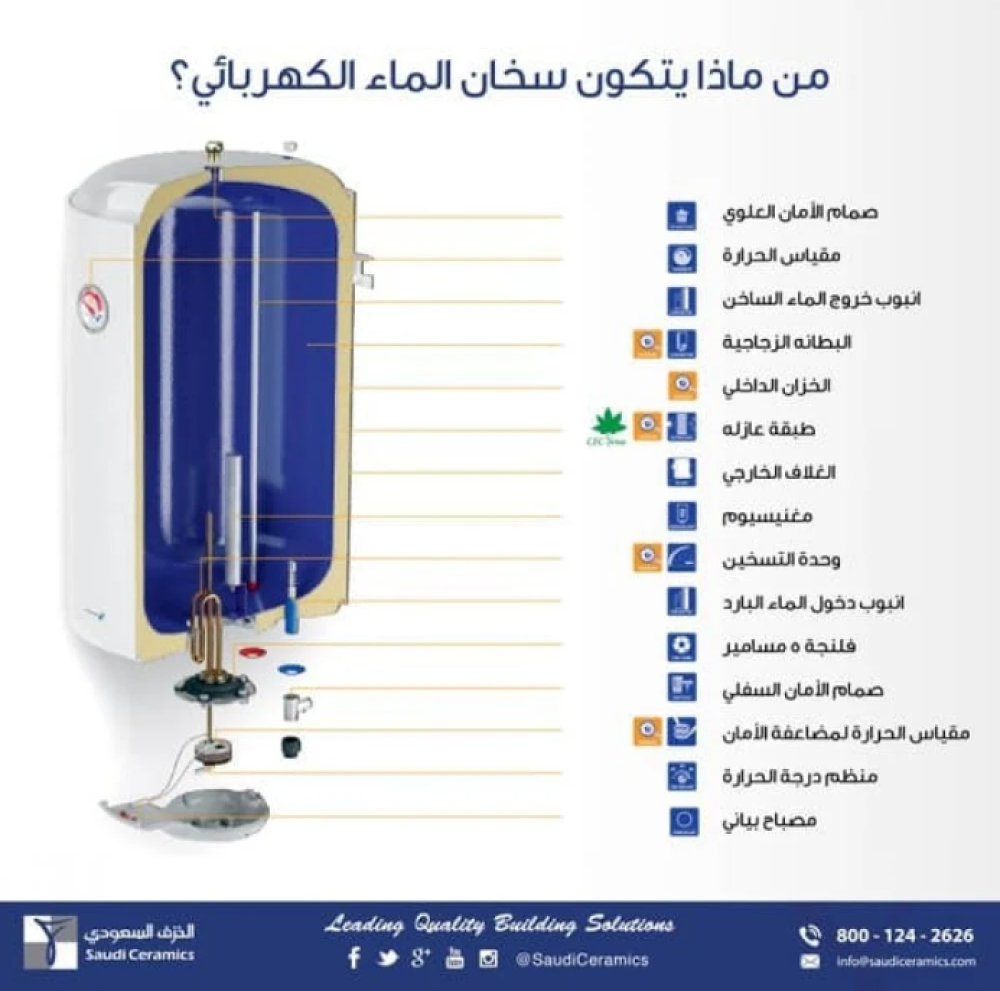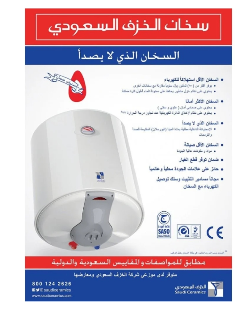 مميزات سخان الخزف السعودي 80 لتر عمودي :