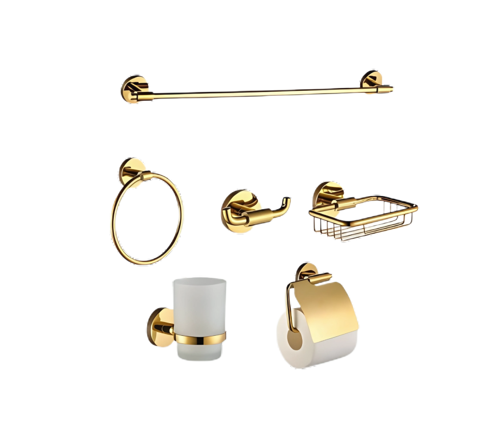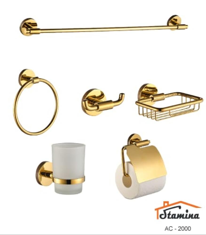 مجموعة إكسسوارات حمام 6 قطع ستامينا – تصميم فاخر باللون الذهبي
