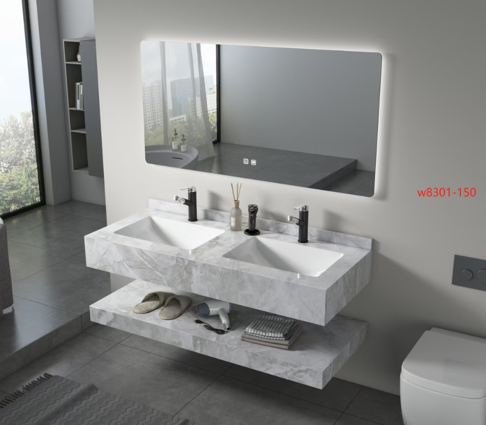 🛁 مغسلة رخام صناعي مودرن بحوضين مع مرآة LED – فخامة عملية لأناقة حمامكالنوع: