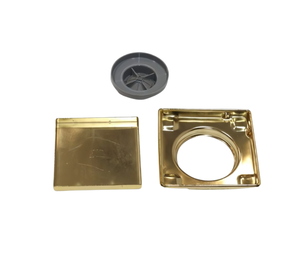 صفاية البلاط لون ذهبي مقاس 15*15 كامل الاستانلس ستيل درجة 304 هي منتج يستخدم للتصريف وتنقية المياه في الحمامات والمطابخ وغيرها من المساحات المائية. تم تصميمها بشكل مخفي لتتناسب مع تصميم البلاط وتمنح المساحة مظهرا أنيقا ومتسقا. صفاية بلاط إستانلس ستيل درجة 304 مخفية مع رد