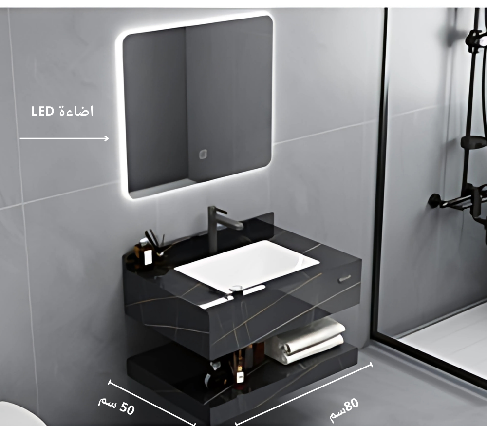 مغسلة مودرن من الرخام الصناعي بلون أسود ومقاسات مختلفة (60 سم و80 سم)