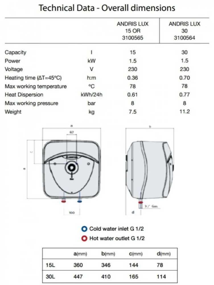 - مقاس سخان أريستون 30 لتر 45*45 سم