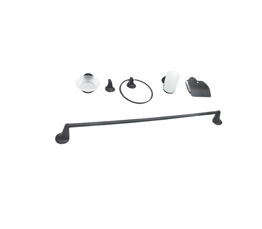 مجموعة إكسسوارات الحمام 6 قطع – تصميم عصري باللون الأسود