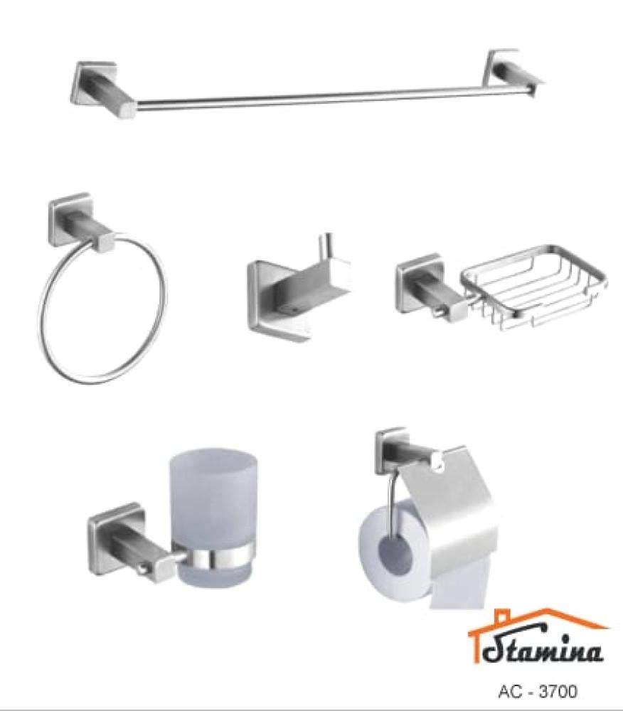 اجعل حمامك أكثر أناقة وعملية مع مجموعة إكسسوارات الحمام 6 قطع من ستامينا المصنوعة من الفولاذ المقاوم للصدأ. توفر هذه المجموعة تصميمًا عصريًا ومتانة عالية، مما يجعلها مثالية للاستخدام اليومي في الحمامات الحديثة والفاخرة.