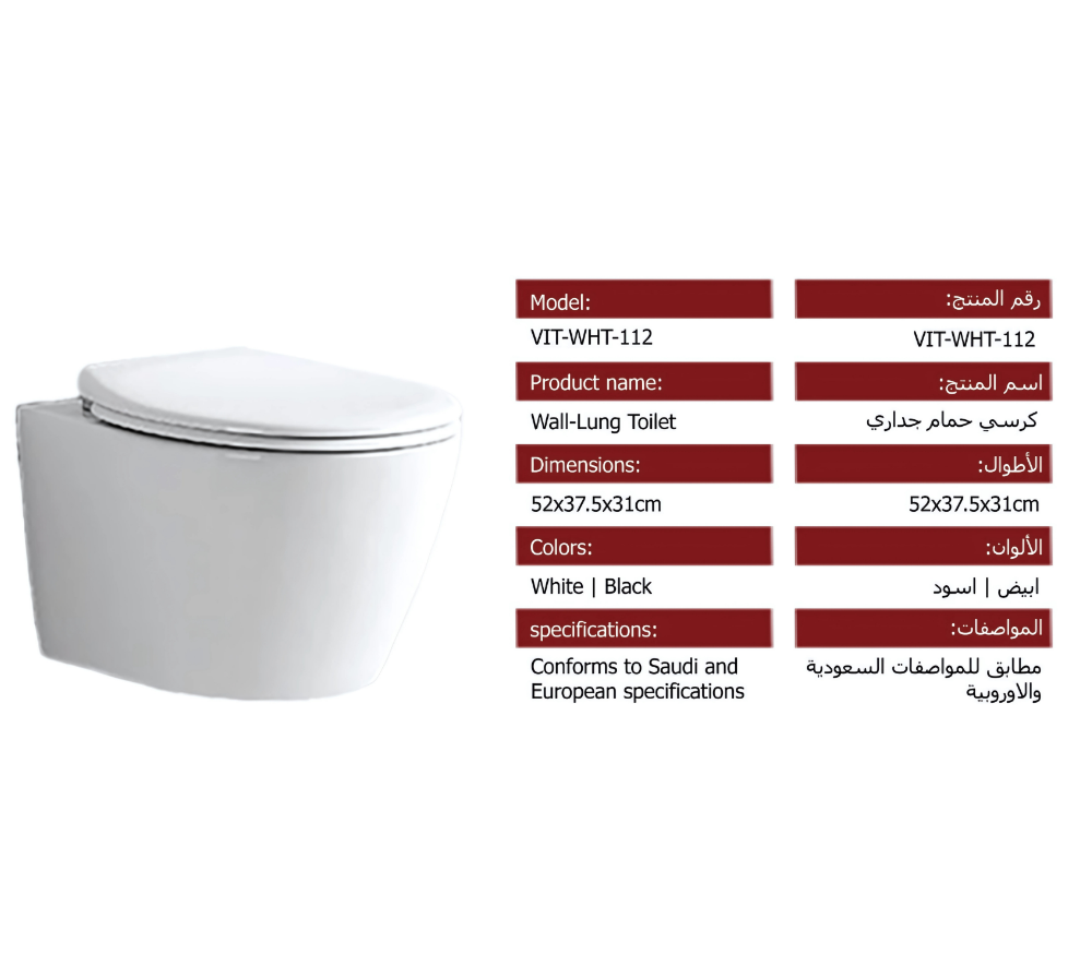 كرسي الحمام الجداري فيتا VIT-WHT-112 خيارًا مثاليًا لعشاق التصميم الحديث والبسيط.