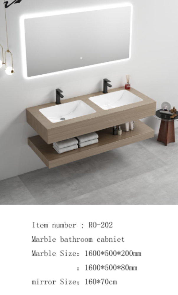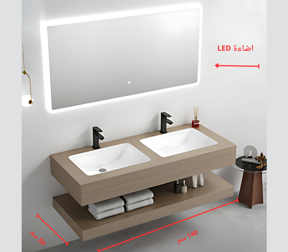 مغسلة موردن رخام صناعي خشبي غامق مرخم مقاس 140 سم
