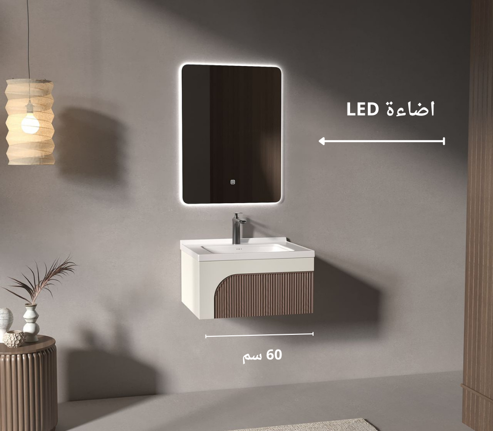 أضف لمسة من الأناقة العصرية إلى حمامك مع هذه المغسلة المعلقة المصنوعة من خشب MDF المقاوم للماء والرطوبة. تأتي بتصميم عصري يتناسب مع جميع الديكورات الحديثة، وتتميز بوحدة تخزين عملية، وحوض سيراميك عالي الجودة، ومرآة بإضاءة LED تعمل باللمس لمظهر فاخر ووظائف متقدمة.